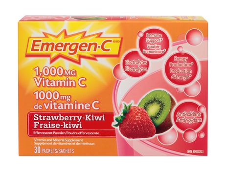 Emergen-C is Your Immunity Sidekick - a tasty drink mix that helps maintain immune function. Emergen-C natural health supplement provides 1,000 mg of Vitamin C – more than 10 oranges* – and is packed with B Vitamins, electrolytes, and antioxidants. Emergen-C Super Orange vitamin drink mix also aid in energy production, are made with natural flavors, and contain no artificial sweeteners. Just add the effervescent powder to 120-180 mL (4-6 oz.) of water & stir. With many tasty flavours plus a variety of special formulas to discover, Emergen-C supplements make it deliciously easy to help support your wellness goals. Ninja Your Day, every day, with Emergen-C.